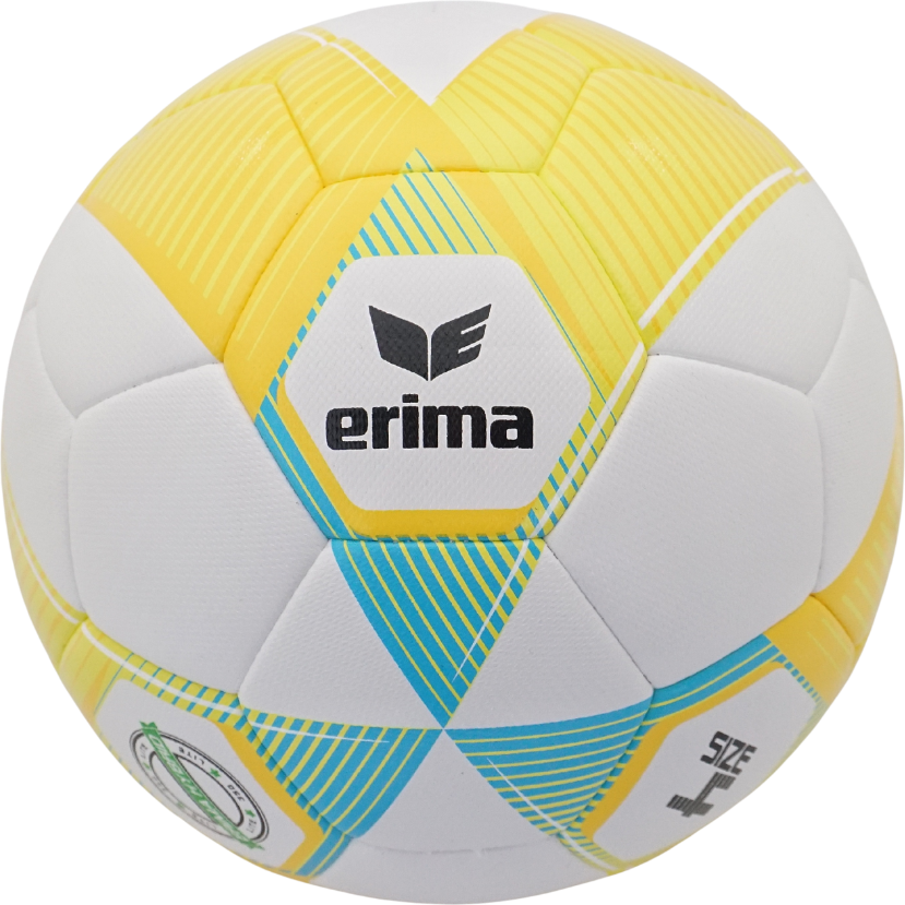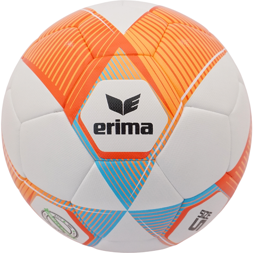 Das hochwertige PU-Obermaterial mit 3D-Struktur sorgt für ein angenehmes Ballgefühl und zuverlässige Spieleigenschaften. Dank der innovativen ERIMA Hybrid Technologie kombiniert der Ball geklebte und genähte Elemente und bietet so eine stabile Konstruktion mit guter Formbeständigkeit.