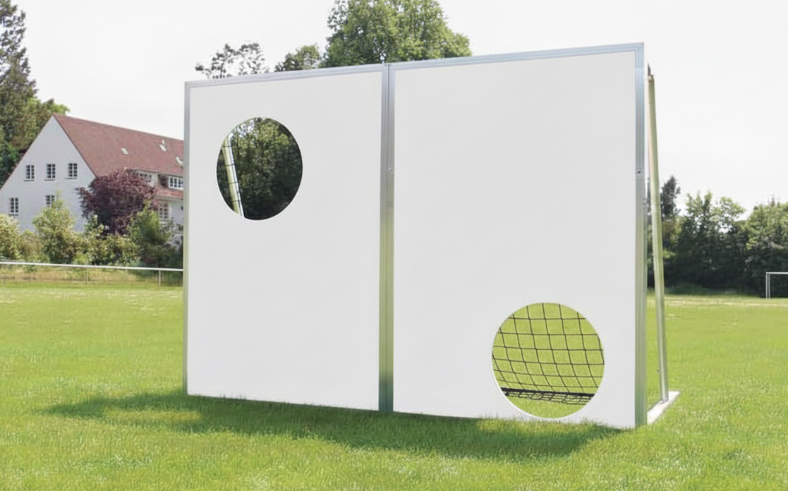 Hinweis: Die Torwand wird standardmäßig mit weißen unbedruckten Platten geliefert - Werbung kann problemlos aufgeklebt werden.