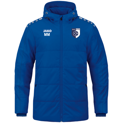 Die JAKO Coachjacke One mit Kapuze ist die ideale Wahl für kalte und nasse Tage am Spielfeldrand, im Stadion oder im Alltag. Das wind- und wasserabweisende Obermaterial mit Laminierung schützt zuverlässig vor Wind und Regen, während die wärmeisolierende Wattierung für angenehme Wärme bei niedrigen Temperaturen sorgt. Die typischen JAKO Dots auf der Schulter setzen sportliche Akzente und unterstreichen den klaren One-Look. Für zusätzlichen Komfort verfügt die Jacke über einen separaten Kragen mit weichem Fleece auf der Innenseite, der den Halsbereich angenehm wärmt. Die Kapuze mit Kordelzug und Stoppern bietet flexiblen Wetterschutz – bei Kindergrößen ohne Kordeln für maximale Sicherheit. Der Ärmelabschluss mit eingearbeitetem Gummi sorgt für einen optimalen Sitz, während die Seitentaschen mit Reißverschluss praktischen Stauraum bieten.