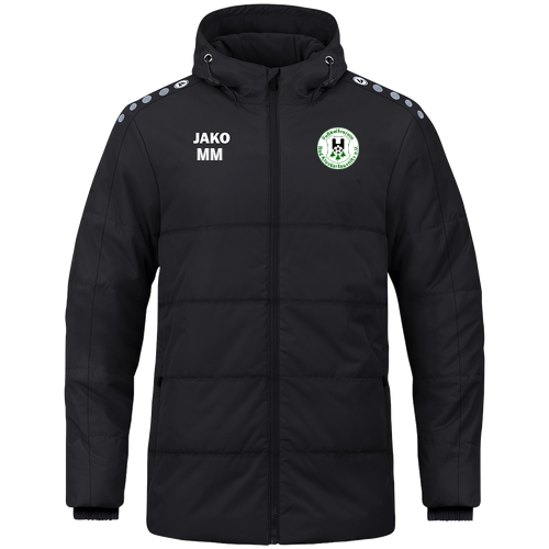 Die JAKO Coachjacke One mit Kapuze ist die ideale Wahl für kalte und nasse Tage am Spielfeldrand, im Stadion oder im Alltag. Das wind- und wasserabweisende Obermaterial mit Laminierung schützt zuverlässig vor Wind und Regen, während die wärmeisolierende Wattierung für angenehme Wärme bei niedrigen Temperaturen sorgt. Die typischen JAKO Dots auf der Schulter setzen sportliche Akzente und unterstreichen den klaren One-Look. Für zusätzlichen Komfort verfügt die Jacke über einen separaten Kragen mit weichem Fleece auf der Innenseite, der den Halsbereich angenehm wärmt. Die Kapuze mit Kordelzug und Stoppern bietet flexiblen Wetterschutz – bei Kindergrößen ohne Kordeln für maximale Sicherheit. Der Ärmelabschluss mit eingearbeitetem Gummi sorgt für einen optimalen Sitz, während die Seitentaschen mit Reißverschluss praktischen Stauraum bieten.
