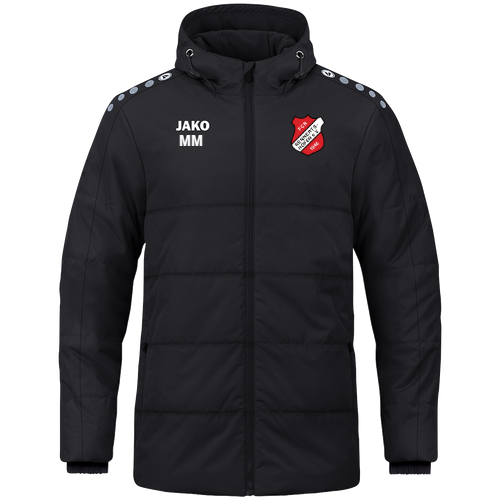 Die JAKO Coachjacke One mit Kapuze ist die ideale Wahl für kalte und nasse Tage am Spielfeldrand, im Stadion oder im Alltag. Das wind- und wasserabweisende Obermaterial mit Laminierung schützt zuverlässig vor Wind und Regen, während die wärmeisolierende Wattierung für angenehme Wärme bei niedrigen Temperaturen sorgt. Die typischen JAKO Dots auf der Schulter setzen sportliche Akzente und unterstreichen den klaren One-Look. Für zusätzlichen Komfort verfügt die Jacke über einen separaten Kragen mit weichem Fleece auf der Innenseite, der den Halsbereich angenehm wärmt. Die Kapuze mit Kordelzug und Stoppern bietet flexiblen Wetterschutz – bei Kindergrößen ohne Kordeln für maximale Sicherheit. Der Ärmelabschluss mit eingearbeitetem Gummi sorgt für einen optimalen Sitz, während die Seitentaschen mit Reißverschluss praktischen Stauraum bieten.