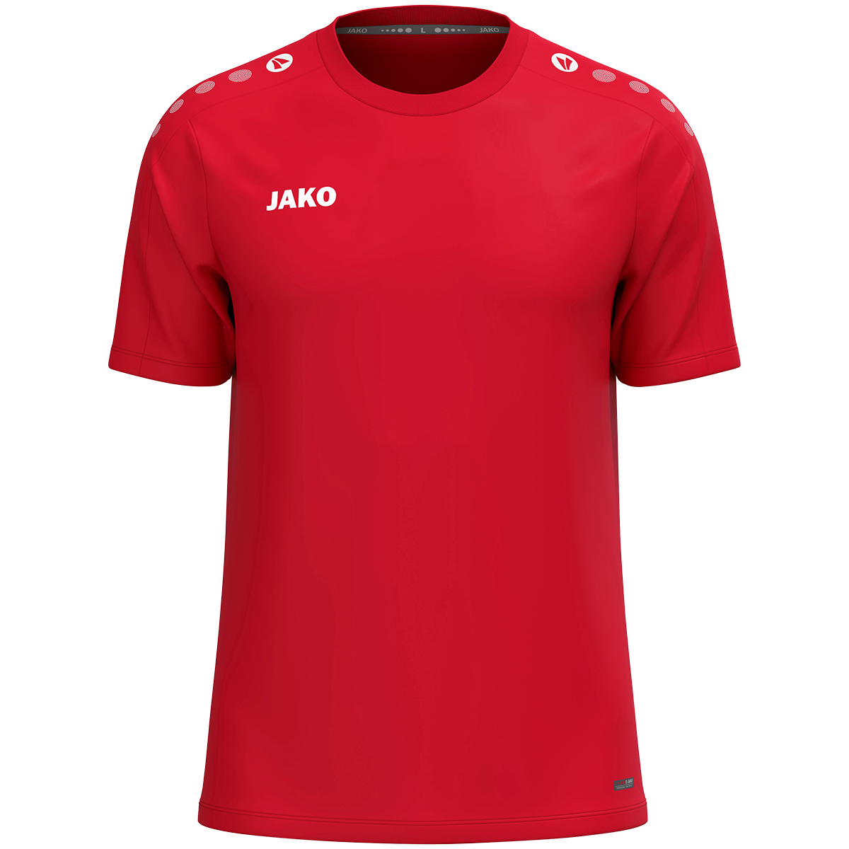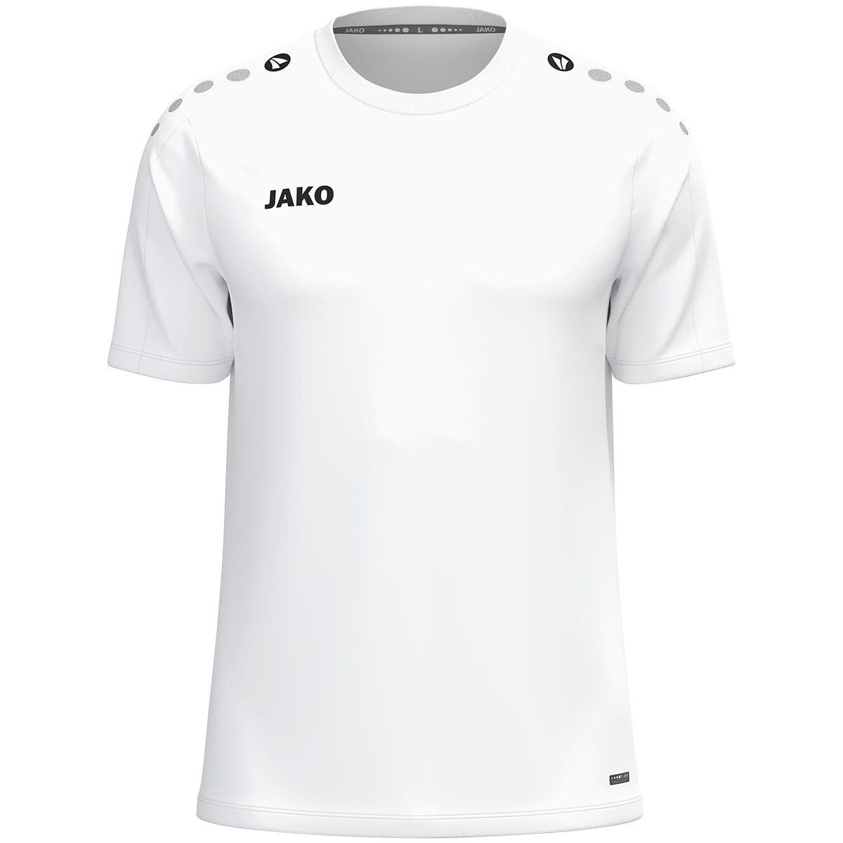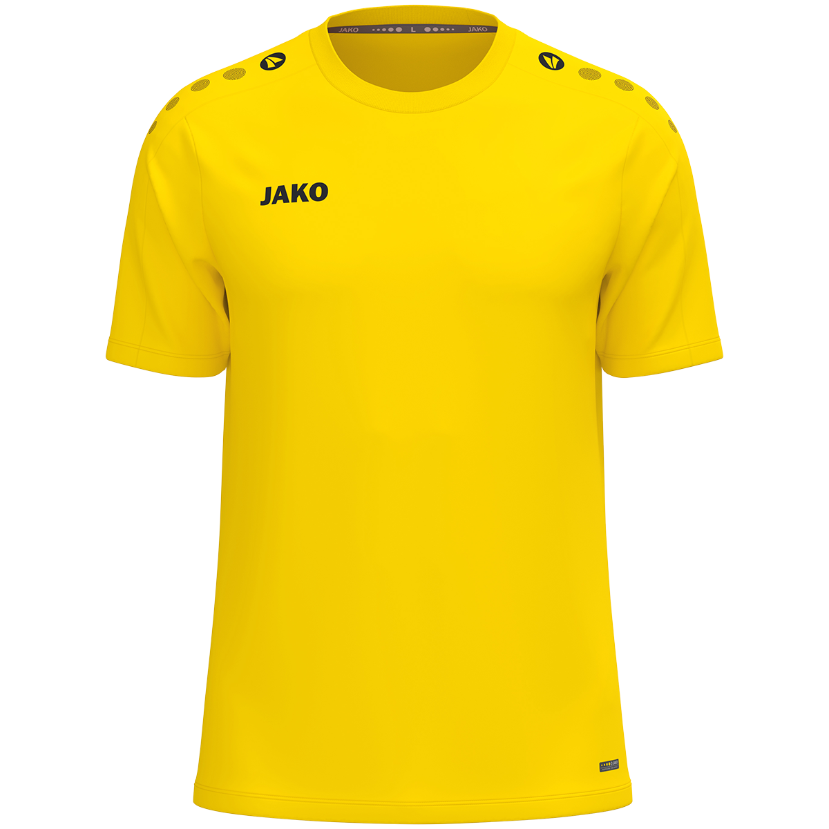 Das JAKO T-Shirt One überzeugt durch sein sportlich-zeitloses Design und vielseitige Einsatzmöglichkeiten. Die typischen JAKO Dots auf der Schulter setzen sportliche Akzente, während das dezente JAKO-Logo auf der rechten Brust für einen klaren, klassischen Look sorgt. Das leichte Polyester-Eyelet-Material bietet hohen Tragekomfort im Alltag, beim Sport oder in der Freizeit. Hergestellt aus 100 % recyceltem Polyester ist das T-Shirt langlebig, pflegeleicht und nachhaltig. Dank seines schlichten Designs eignet sich das JAKO T-Shirt One ideal zum Veredeln mit Vereins-, Team- oder Firmenlogos.