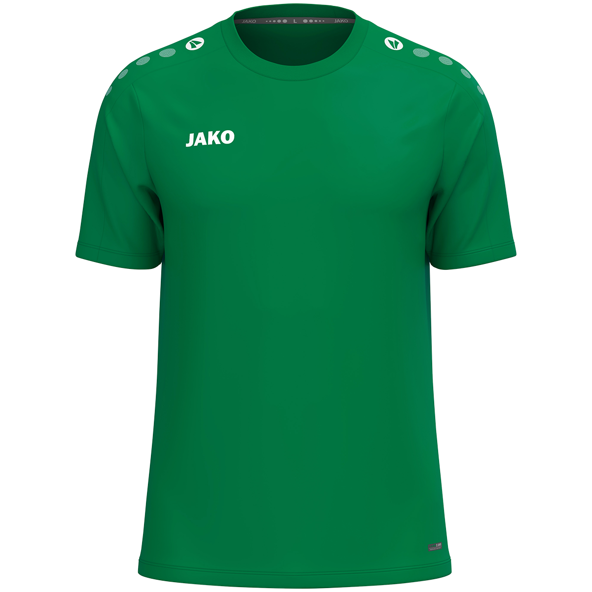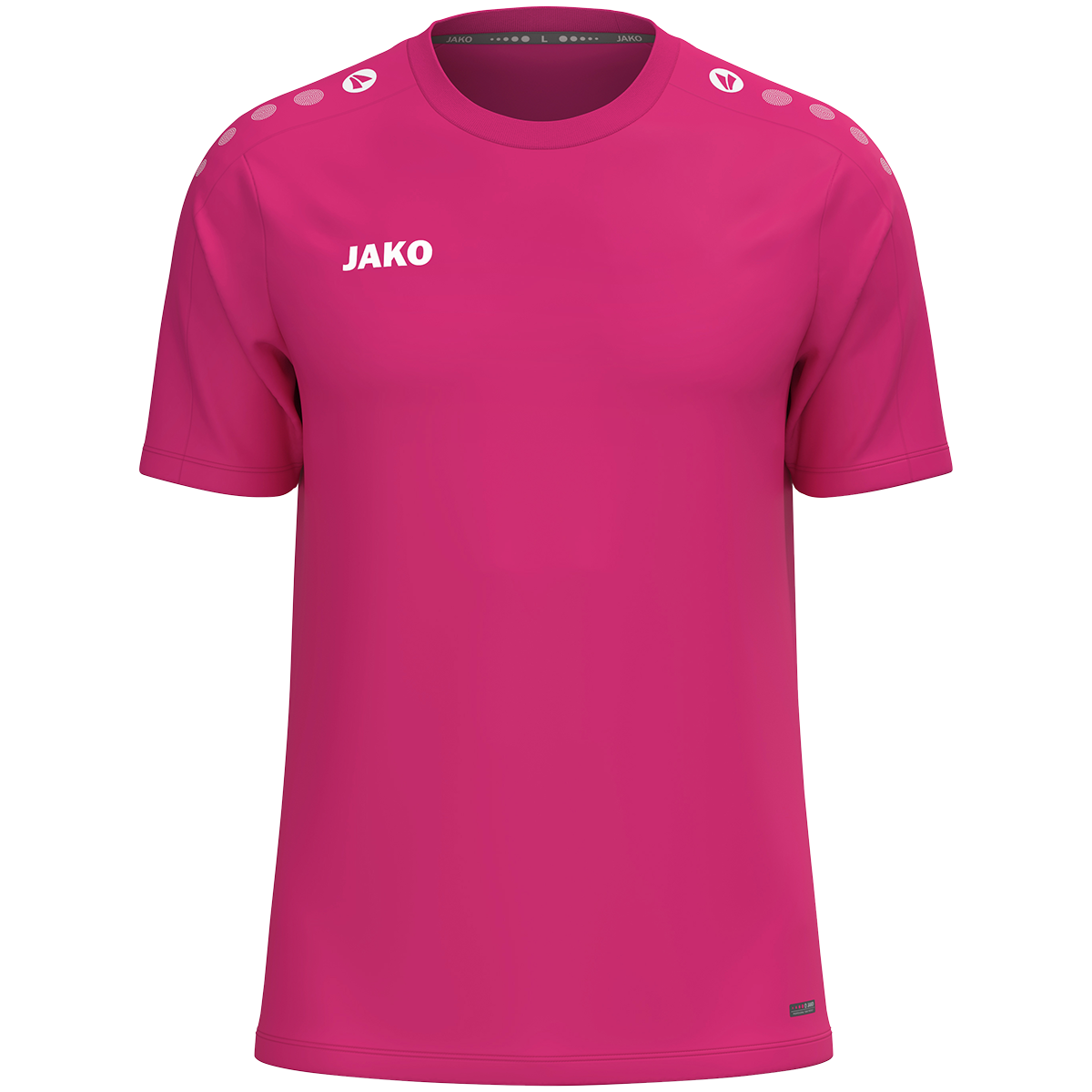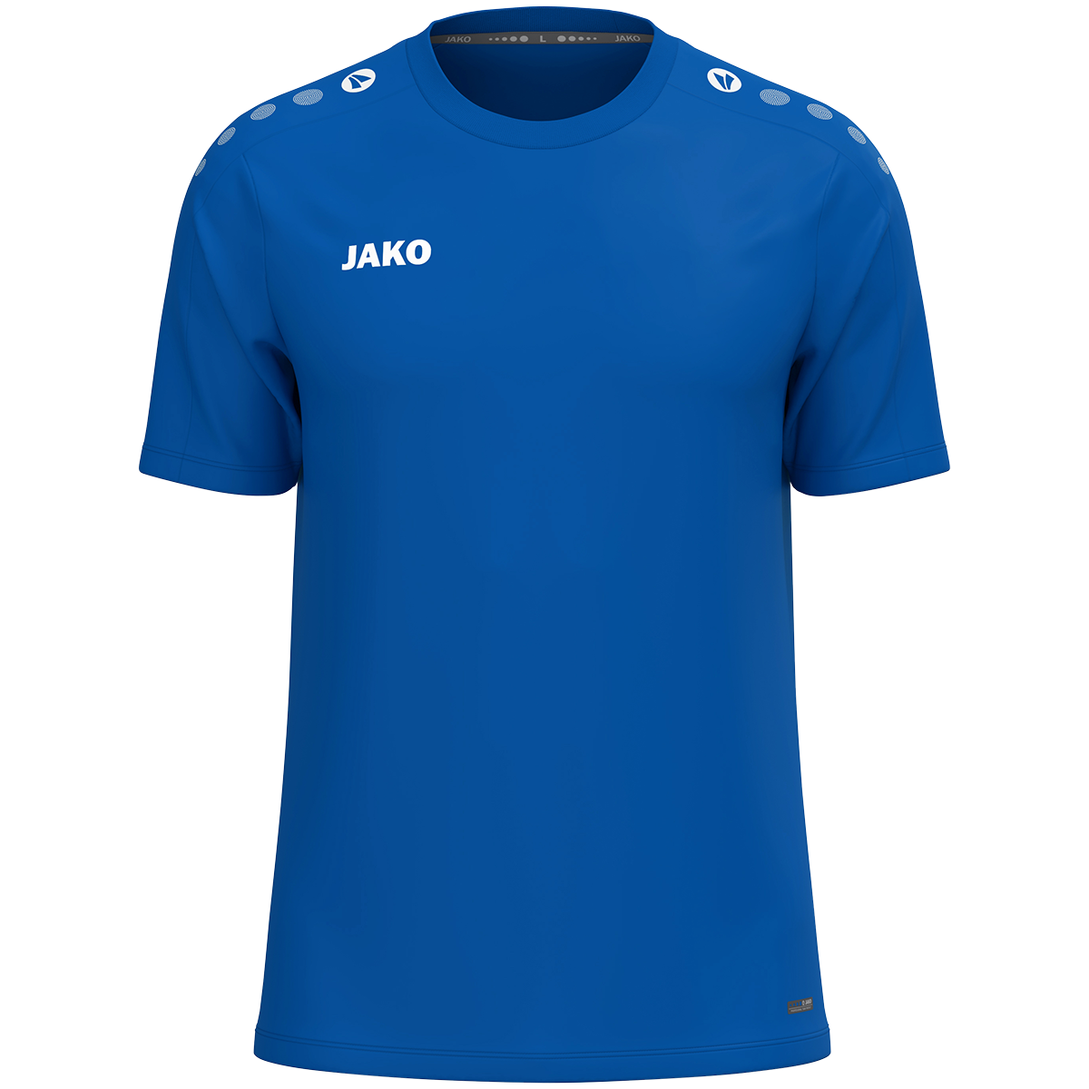 Das JAKO T-Shirt One überzeugt durch sein sportlich-zeitloses Design und vielseitige Einsatzmöglichkeiten. Die typischen JAKO Dots auf der Schulter setzen sportliche Akzente, während das dezente JAKO-Logo auf der rechten Brust für einen klaren, klassischen Look sorgt. Das leichte Polyester-Eyelet-Material bietet hohen Tragekomfort im Alltag, beim Sport oder in der Freizeit. Hergestellt aus 100 % recyceltem Polyester ist das T-Shirt langlebig, pflegeleicht und nachhaltig. Dank seines schlichten Designs eignet sich das JAKO T-Shirt One ideal zum Veredeln mit Vereins-, Team- oder Firmenlogos.