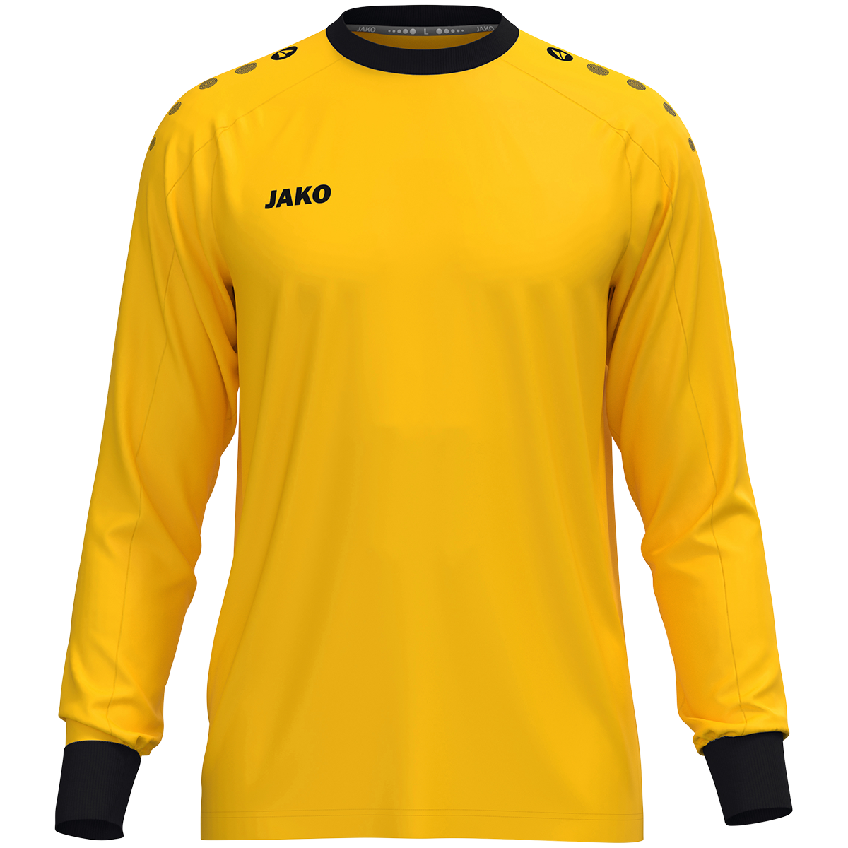 Das JAKO TW-Trikot One überzeugt durch sein sportlich-zeitloses Design und ist speziell auf die Anforderungen von Torhütern ausgelegt. Die Kontrastdetails an Kragen- und Ärmelabschluss sowie der Rippkragen in Kontrast setzen markante optische Akzente und sorgen für einen klassischen Torwart-Look. Das robuste Polyester-Interlock-Material bietet hohen Tragekomfort im Alltag, beim Sport oder im Wettkampf. Hergestellt aus 100 % recyceltem Polyester ist das Trikot langlebig, pflegeleicht und nachhaltig. Dank seines klaren Designs eignet sich das JAKO TW-Trikot One ideal zum Veredeln mit Vereins-, Team- oder Sponsorenlogos.